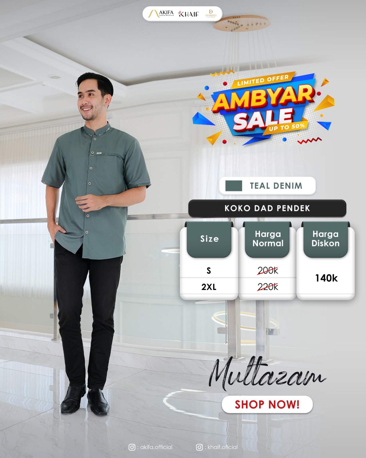 MULTAZAM KOKO DAD PENDEK TEAL DENIM (SALE 220K-->140K)