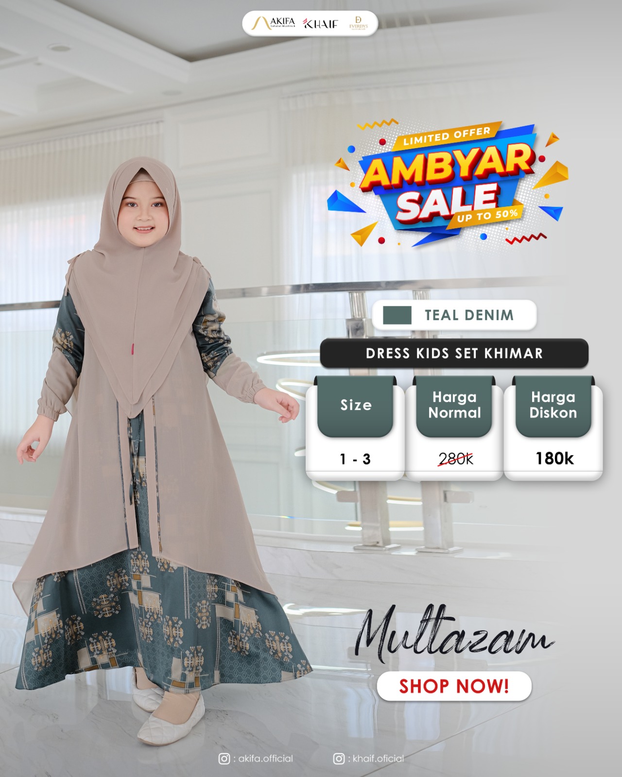 MULTAZAM DRESS KIDS SET TEAL DENIM (SALE 280K-->180K)