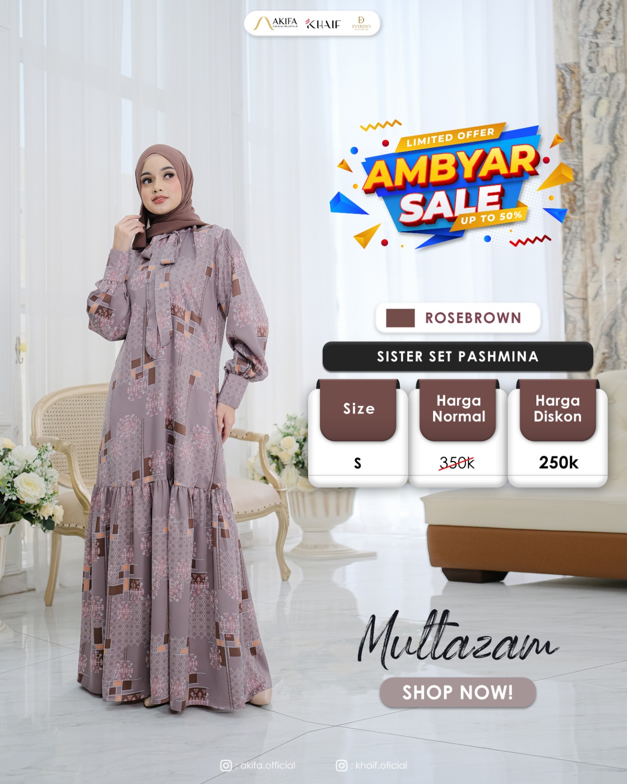 MULTAZAM SISTER SET PASHMINA ROSEBROWN (SALE 350K-->250K)