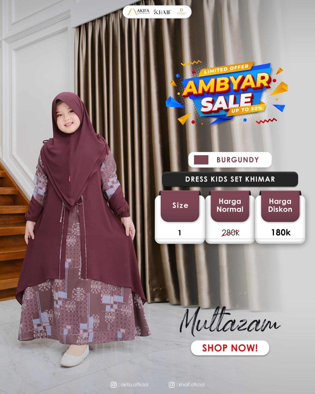 MULTAZAM DRESS KIDS SET BURGUNDY (SALE 280K-->180K)